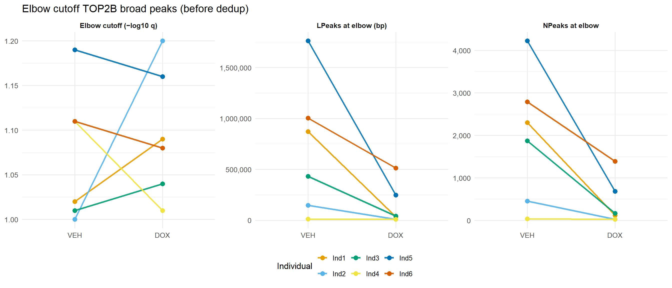 select(Sample, Ind, Tx, Elbow_cutoff_Qscore, NPeaks_at_cutoff, LPeaks_at_cutoff) %>%